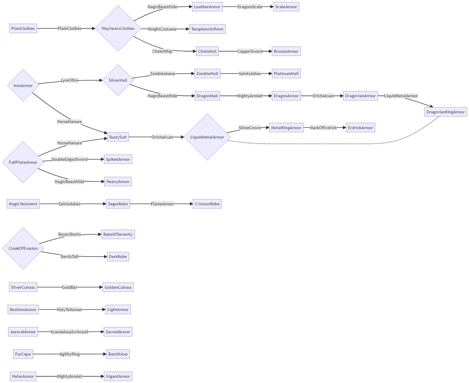 FullPlateArmor-->|MagicBeastHide|HeavyArmor