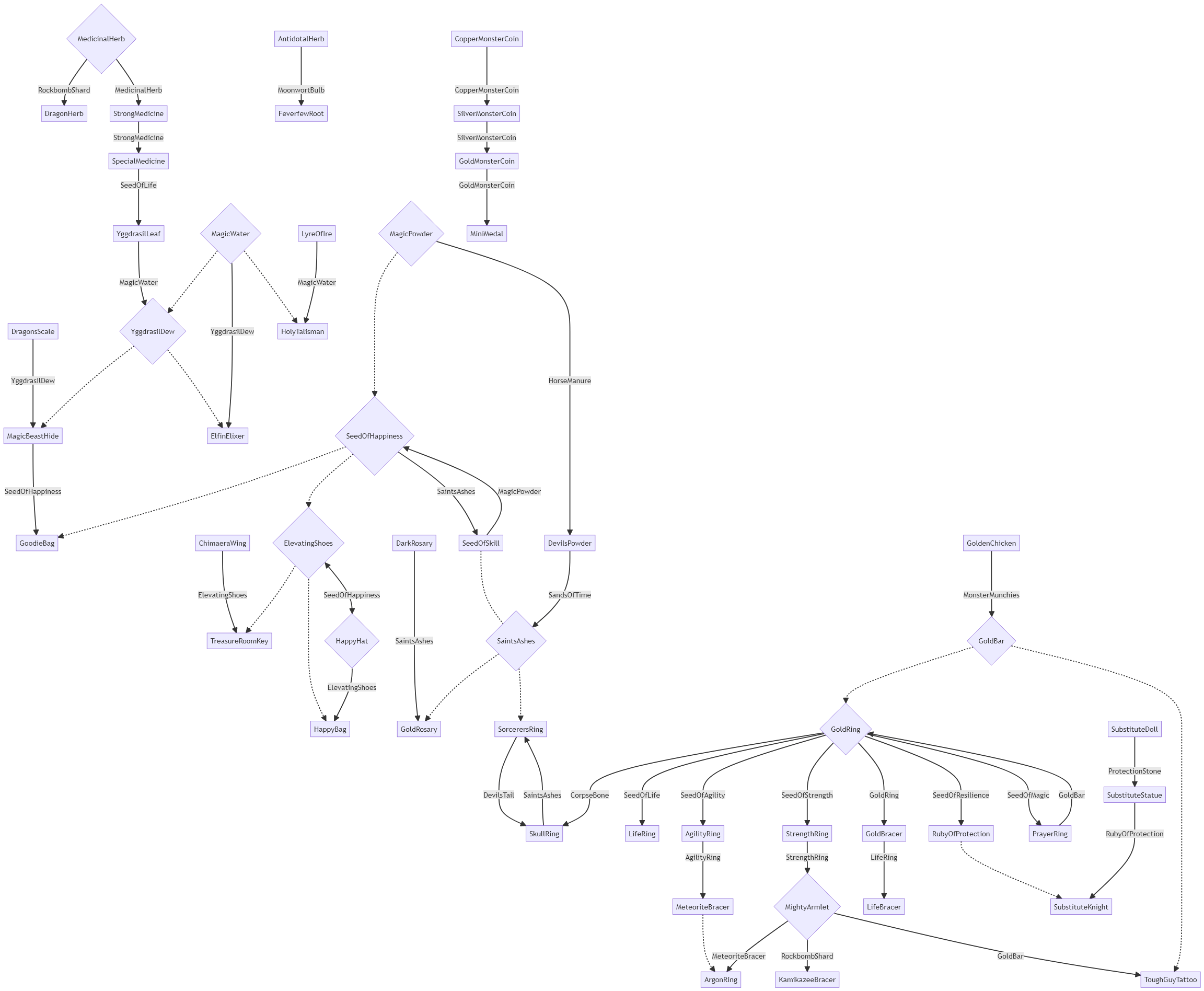 YggdrasilLeaf-->|MagicWater|YggdrasilDew{YggdrasilDew}